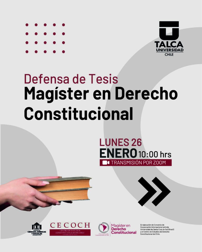 La Defensa de Tesis se realizará a través de la plataforma Zoom. Invitamos a todos quieran participar en esta solemne actividad, inscribirse al correo de nuestra asistente Vanessa Carrasco Vera, vcarrasco@utalca.cl